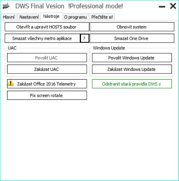 -Zakázat Office 2016 Telemetry- (najít předem aplikaci msosync.exe, pokud existuje, dát kopii do Dokumenty a přes toto tlačítko ji spustit). Většinou už se znovu neobjeví.